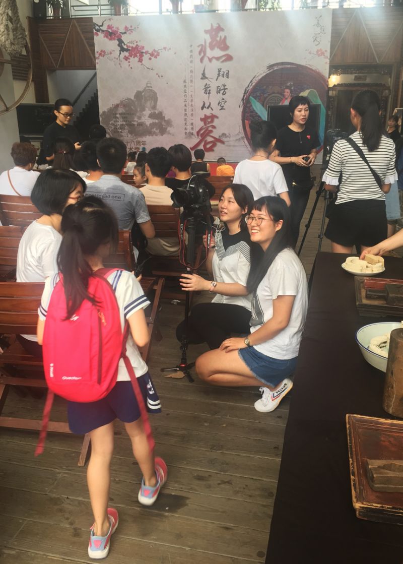 一开始缺乏实地采拍经验的同学们有点手忙脚乱,在随队记者、老师的指导下,同学们迅速进入状态,分别抓取了不同类型的戏迷进行采访。