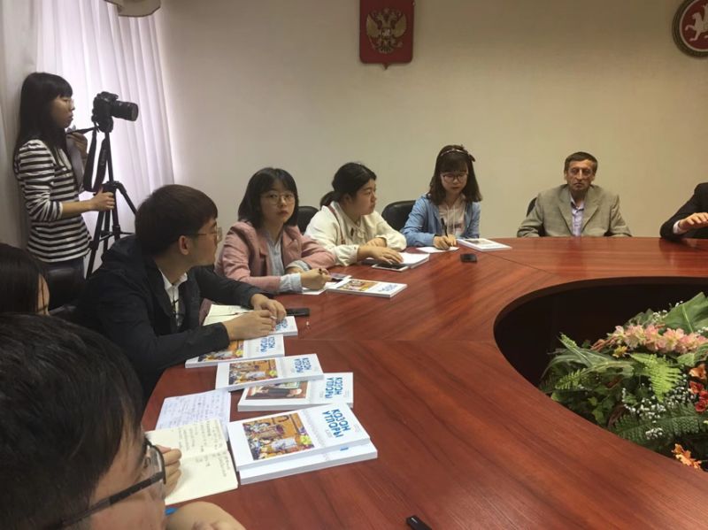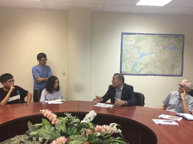 在协会,大家首先与协会的部分成员以座谈会形式进行了集体采访,了解该协会的概括以及主要负责的两份鞑靼语杂志《喀山之摘》和《遗产》的出版发行情况,随后,又分别采访了协会主席Rafis Korban和《喀山之摘》的主编Rustem Galivllin,深入了解以协会为代表的相关机构对传承和发展本民族语言、历史与文化的重视和举措,特别是如何针对当代年轻人的阅读兴趣和偏好,来采取有效的措施。