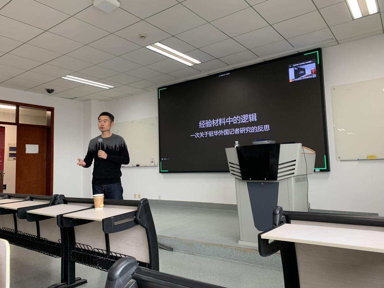 此次讲座中,钱进老师围绕自己在2015年所出版的专著《作为流动的职业共同体:驻华外国记者研究》进行讲述。他从研究的缘起、研究主题的确定、研究问题的初步确定、研究方法的确定、研究的执行、重返理论这六个方面分享了驻华外国记者研究的经历,并在讲座最后从“难以抵达的现场”、“作为历史记录的田野”、“依然重要的问题”、“全球田野的新可能”几个方面讲述了十年后的新思考。