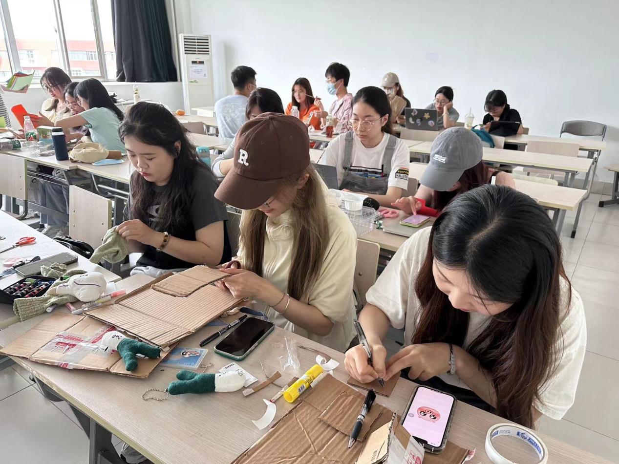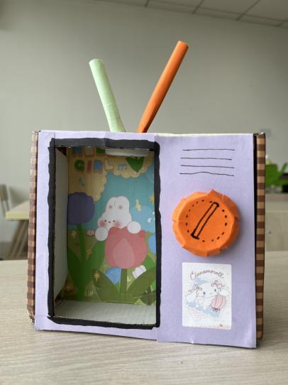 首先,团支书向团员们梳理了我国生态文明建设的相关政策,并播放了环保主题宣传片。随后,大家通过知识问答游戏形式巩固了四类垃圾分类的要领,更深入地理解了垃圾分类的意义。随后的“变废为宝”环节,团员们利用生活中的各种废旧物品作为原材料,充分发挥自己的想象能力和创造能力,进行DIY创作。大家提前收集了一些废品,如生活中常见的纸盒、矿泉水瓶、纸板、袜子等。在这个环节,这些废品经过各小组创造性地裁剪拼贴、彩纸包装、彩笔描绘后,变成了小狗玩偶、能换台的小电视、笔筒等装饰性用品。最后,大家依次展示了小组作品并为自己喜爱的作品投票。