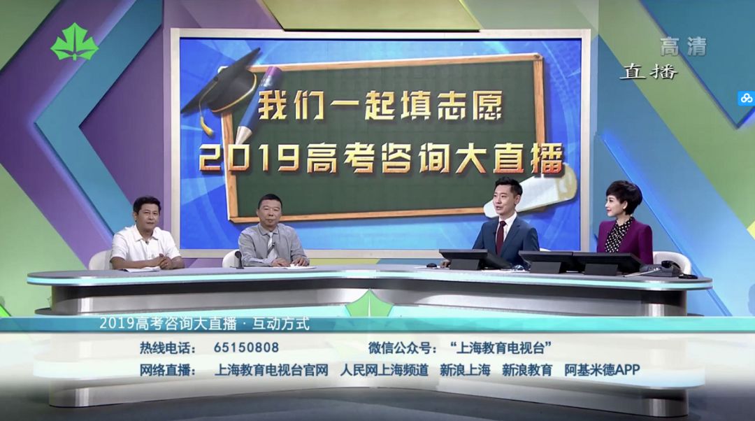 赵梦然主持2019年高考咨询大直播,左一为华东师大招生办主任濮晓龙。
