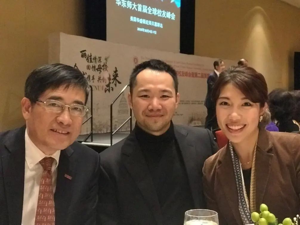 李思琪(右一)与时任华东师范大学党委书记童世骏合影