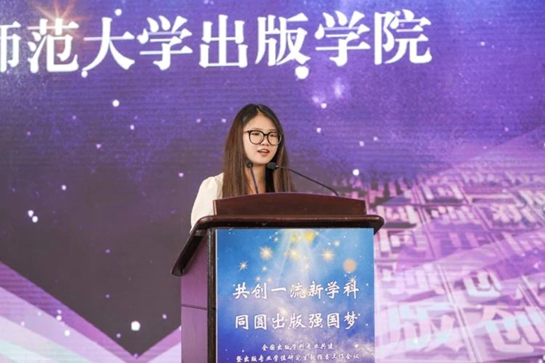 交换生代表、华东师范大学出版学院2021级本科生葛斐在大会上分享了出版学科的学习心得。她表示,将珍惜出版学科共建交换生项目机会,进一步加强出版专业理论学习,丰富出版行业实践经历。