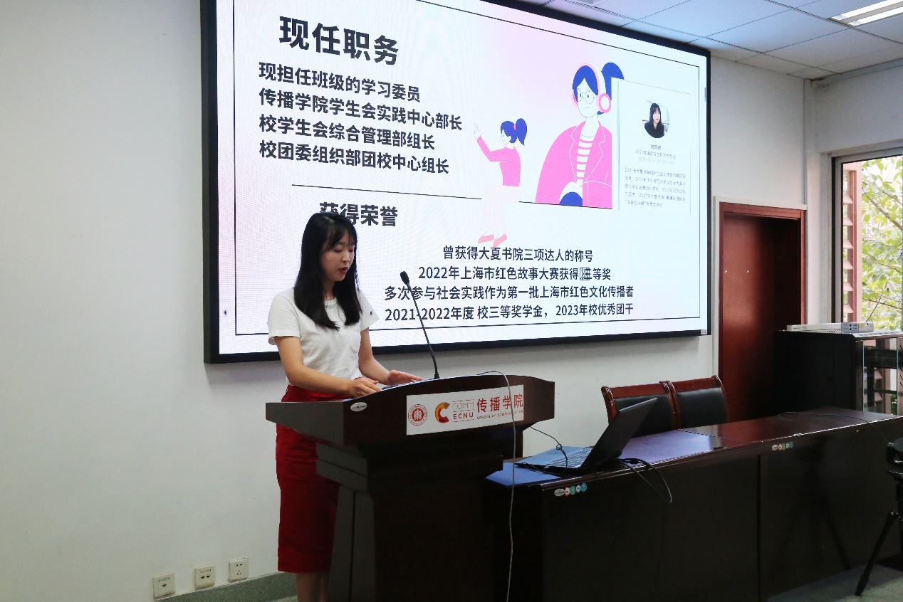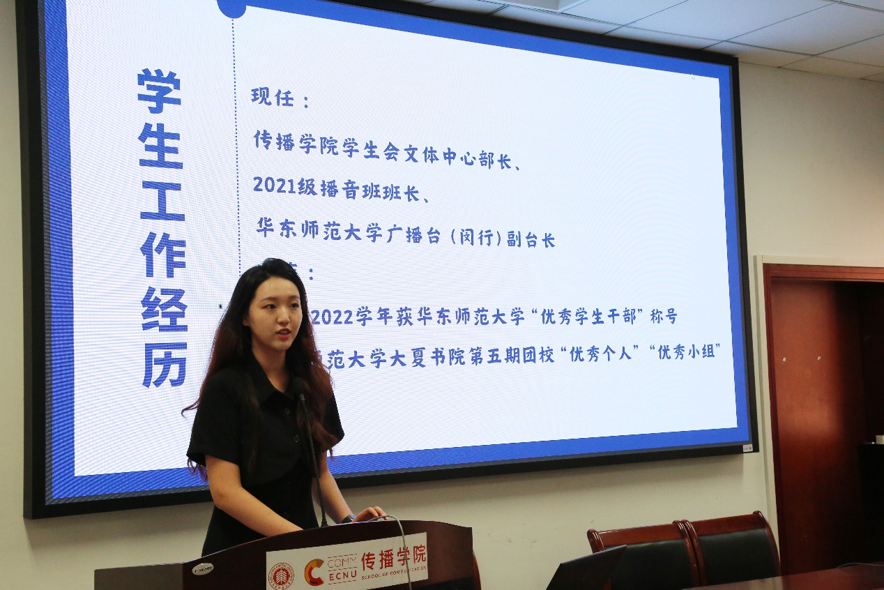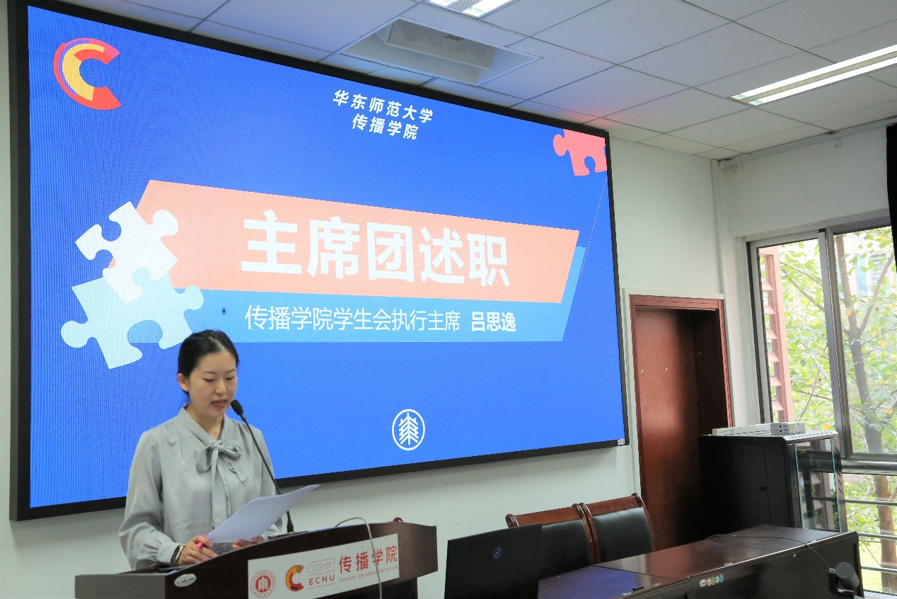 ag亚游 第十七届学生会主席团成员吕思逸代表ag亚游 学生会主席团向各位与会代表、老师作主席团年度工作述职报告。在过去一年里,ag亚游 学生会积极促进我院共青团工作发展,引导团员青年开展多种多样的实践活动,展现了传院学子的风采;也为传院青年搭建各种展示与人才培养平台,在2022年校运动会、2023年华东师范大学“银杏杯”取得优异成绩。同时也注重提升共青团消息宣传效果,在协助运营ag亚游 公众号、官方微博的工作取得成效。回顾过去一年工作,吕思逸对各位老师与同学的付出与支持表示感谢。