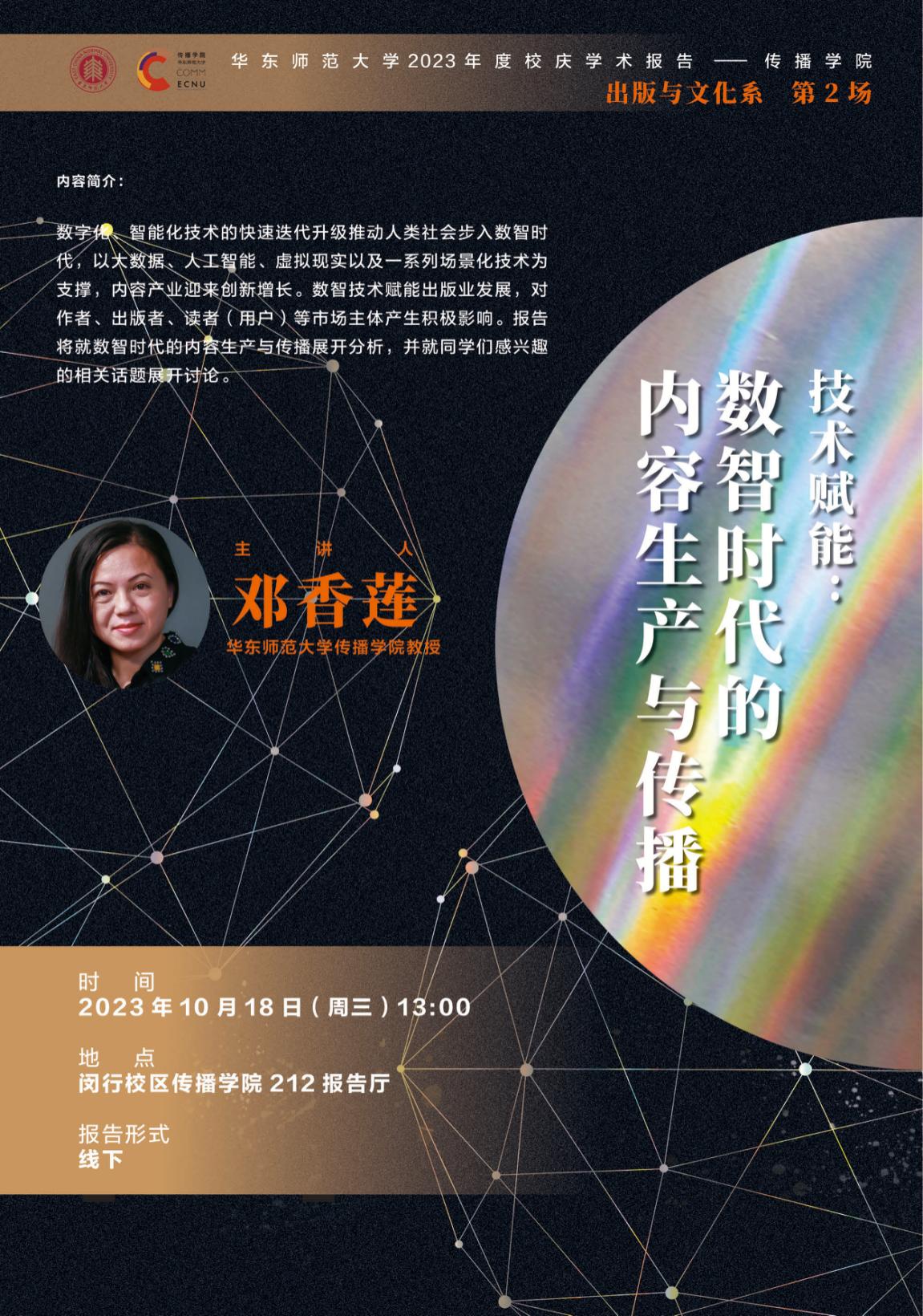 数字化、智能化技术的快速迭代升级推动人类社会步入数智时代,以大数据、人工智能、虚拟现实以及一系列场景化技术为支撑,内容产业迎来创新增长。数智技术赋能出版业发展,对作者、出版者、读者(用户)等市场主体产生积极影响。报告将就数智时代的内容生产与传播展开分析,并就同学们感兴趣的相关话题展开讨论。