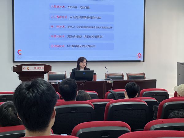 讲座伊始,邓香莲教授以出版专业的人才培养为例,提出优质内容为王,技术为行业赋能的观点,通过分析当前数智技术的发展现状,深刻讲述了数智技术对于日常生活以及行业发展的影响。她提到,技术重塑内容产业,技术一方面重构了内容产业产品生态,另一方面还重构了内容产业链,并以此提出技术与内容融合创新的重要性。她倡导同学们要打开思路、打开视野,积极拥抱新技术,以开放的心态去创作高质量的融合出版作品。