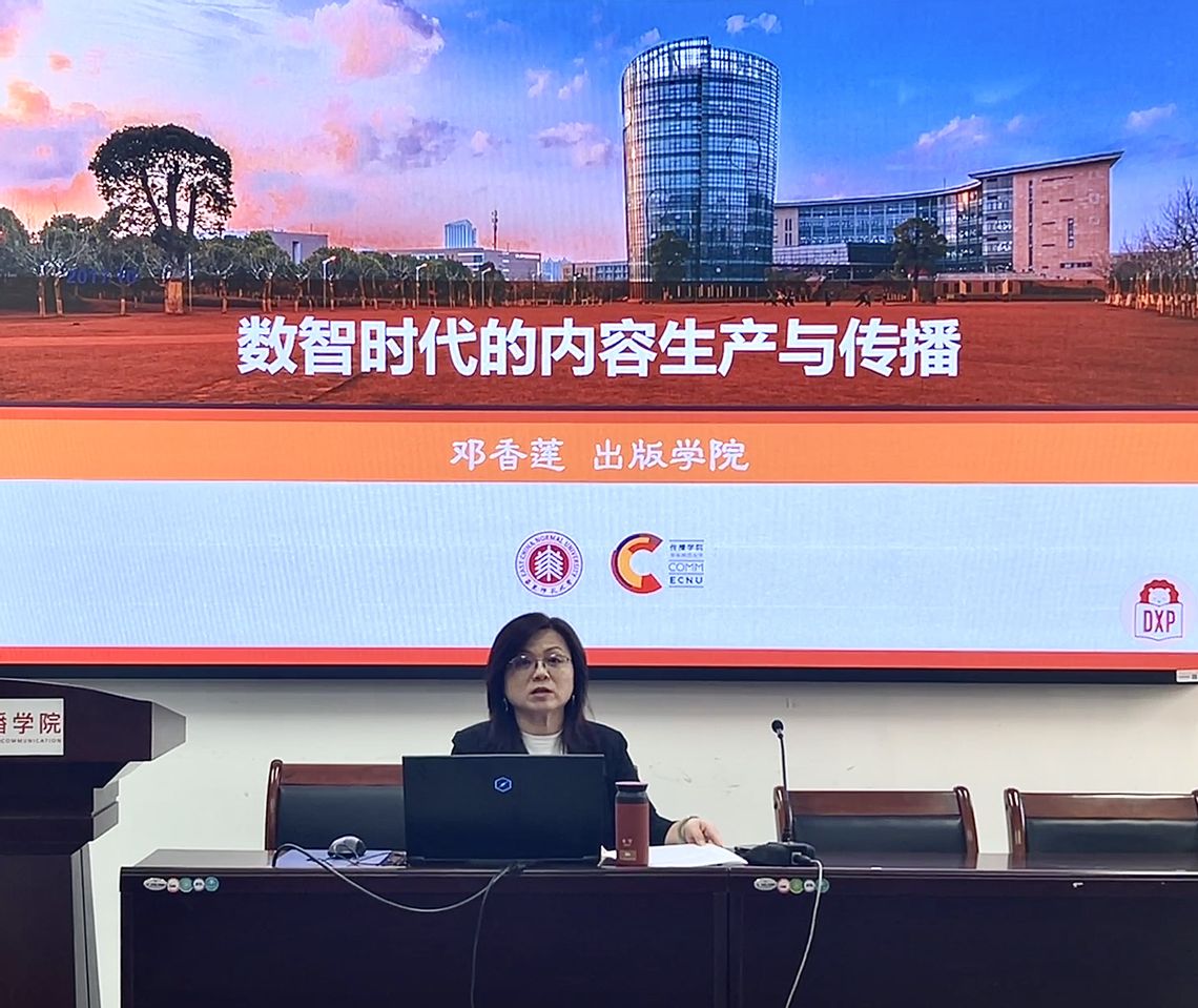 2023年10月18号下午,ag亚游-真人ag-亚游平台 邓香莲教授以“数智时代的内容生产与传播”为主题,在ag亚游 212报告厅开展讲座。