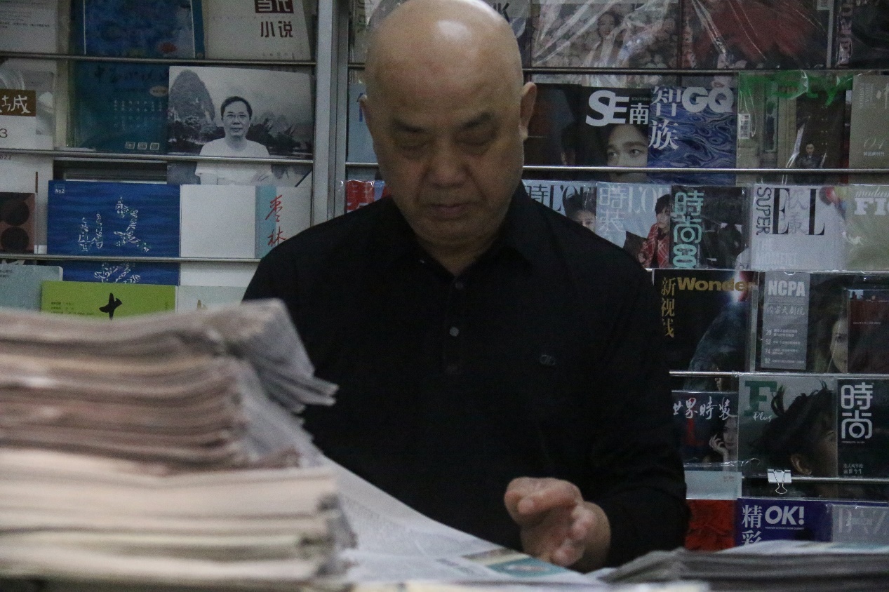 有一个顾客让姜俊印象深刻。他每周来一次,每次买几十份报纸,带回去给老人看,或许是养老院,或许是社区,姜俊没多问,他觉得这是人家的隐私。“老人玩不来手机,但戴上老花镜能拿着几张报纸看一天,有的晚上不看报纸睡不着觉”,姜俊说,“老人看完报纸家里年轻人和小孩可能都会看,这样我就一下服务了三代、四代人”。