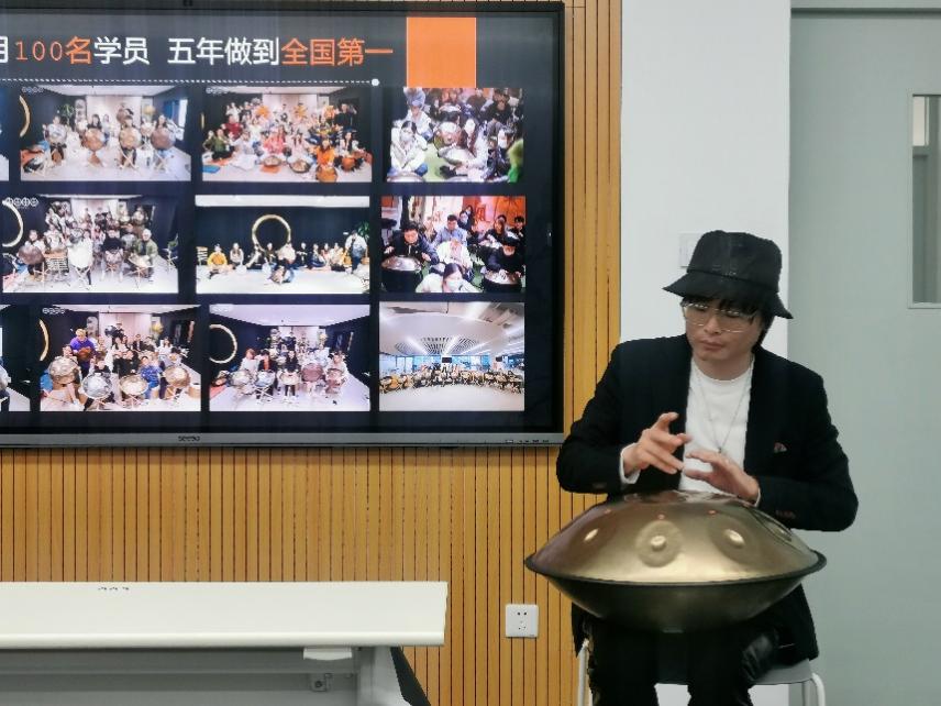 在学习手碟的过程中,清晨大攀洞察到上海手碟授课人较少的市场缺口,合作创立了第四个品牌——申田由甲(CityYoga。清晨大攀认为,“小众和大众之间的关系只差了一层窗户纸”,目前看来小众的手碟也有很大可能在未来成为流行乐器。他希望品牌从上海这座城市出发,兼具田园与自由的因素,并确立了五年内做到全国第一手碟品牌的目标。目前,申田由甲已经有49个班的学员,通过学员学费与手碟销售的商业模式使音乐变现。在讲座现场,清晨大攀现场表演了两首手碟曲目,使同学们能够亲身感受手碟的独特魅力与极强的社交属性。s