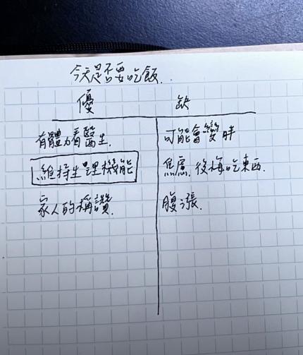 ▲陈槐吃饭前用于心理建设的SWOT量表