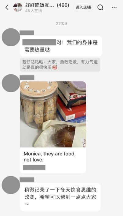 ▲张沁文组建的群聊“好好吃饭互助小组”聊天记录