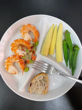 3根玉米笋、4枚秋葵、1/8个吐司、3只虾和4颗葡萄,视频中的这个画面是陈槐每天唯一的一顿饭。