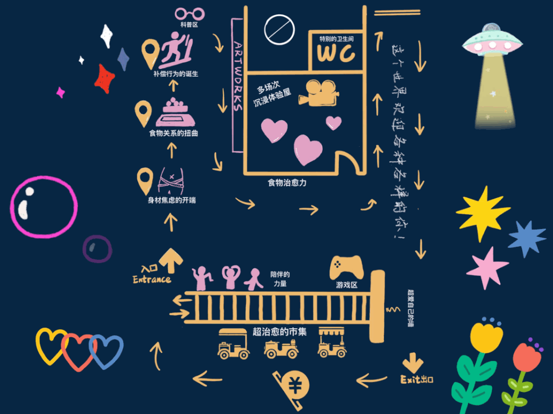 2021年,ED Healer举办国内首个「身材焦虑」主题展——她们“瘦”够了。展览模拟“身材焦虑——进食障碍——自我救赎与和解”的普适心理变化过程,带观展者走入陷于身材焦虑与进食障碍漩涡的人们的内心世界,体会其从困顿挣扎到自我疗愈的感受。ED Healer希望能够通过这样的活动阻止女孩们踏入“进食障碍”的陷阱,张沁文作为策展团队中的一员描述展览的初衷:“因为身材焦虑走进来,了解到进食障碍走出去”。