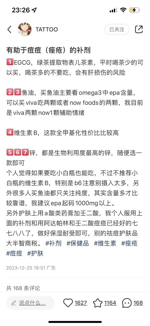 观看并吸收补剂科普视频里的知识,再分享给有需要的人,柳妍对保健品的兴趣在摄入、学习、分享中日渐增长。在柳妍的小红书主页,最高赞的一条是“我一直吃的营养补剂及要点”,共获得了三百多个点赞和收藏。帖子里,柳妍对每个补剂的全称、日摄入剂量、功能如数家珍。
