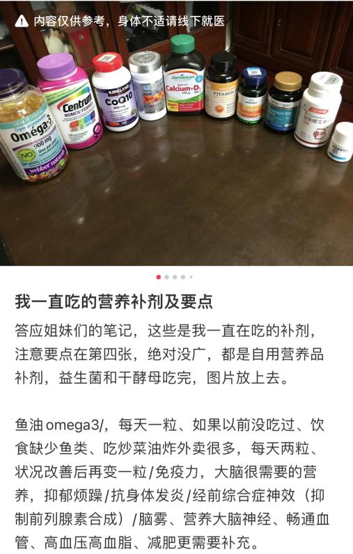 柯米并不喜欢“保健品”这一称呼,也并不认同小红书上泛滥的以“内服”为名的保健品软广告。 “保健品听起来像骗老人的无用之物。” 柯米说。他更倾向于用使用“膳食补充剂(Dietary Supplements)”这一更为“专业”的名词。