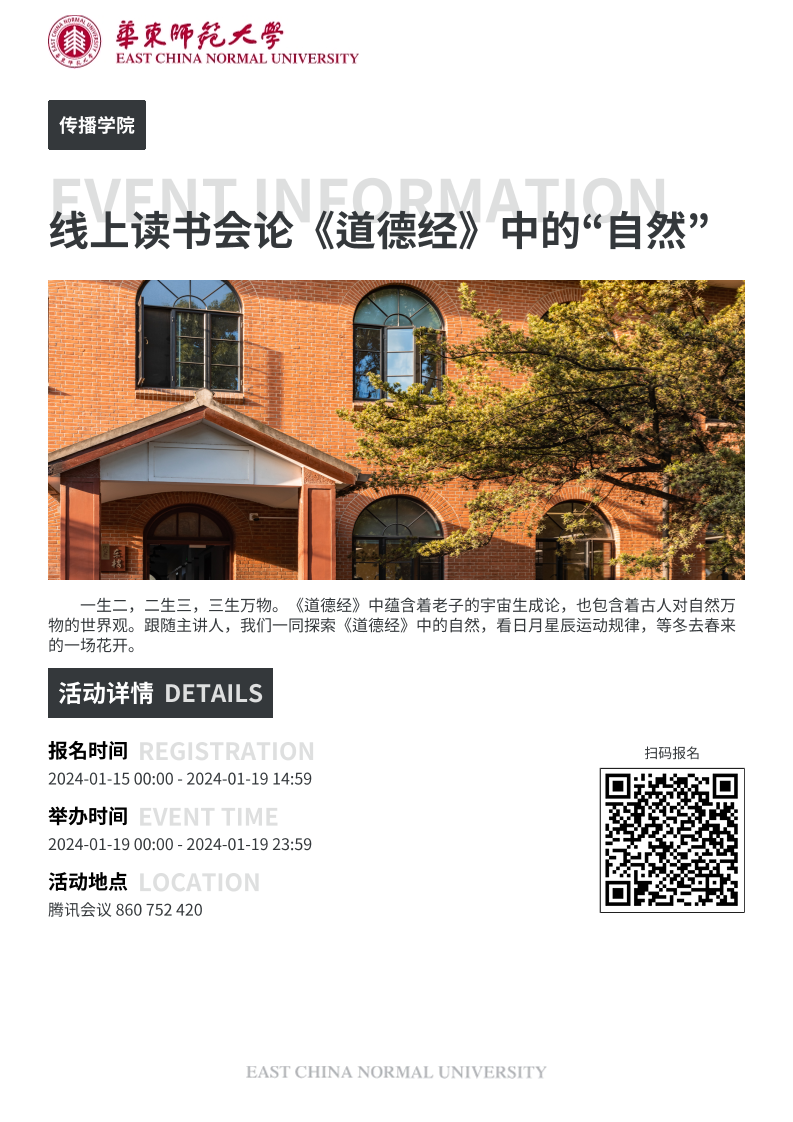 报名方式:请扫描下图二维码报名,并上传读书心得以获得第二课堂学分。