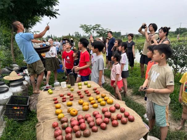 但是这份原来被很多人视作不可思议的生活,现在被越来越多人理解。2023年6月,他们开展了第一届云谷番茄好多节。在这次活动中,云谷农场的伙伴们精心设计了环节:先到工作坊里体验番茄是如何留种、再品尝用番茄制作的餐点、然后于傍晚田野晚餐时感受用米糠和收集的雨水清洗餐具的过程。出乎他们意料的是,番茄节报名人数居然超出了预计,以至于户外的休息区座位紧缺。于是,农场的配菜框、周边的树桩、户外椅、野餐垫、村民家的长条凳、木托板、席子、法式花园椅都被参与者们纷纷搬来。最后一个环节稻田音乐会随着黄昏一同到来,大家坐在各色的凳子、垫子上享受乡村给他们带来的幸福感。在音乐声中能听到参与者们由衷的称赞:“原来有那么多种番茄”、“唤起夏天和家人一起吃糖水番茄的回忆”、“幸福可以这么简单”。