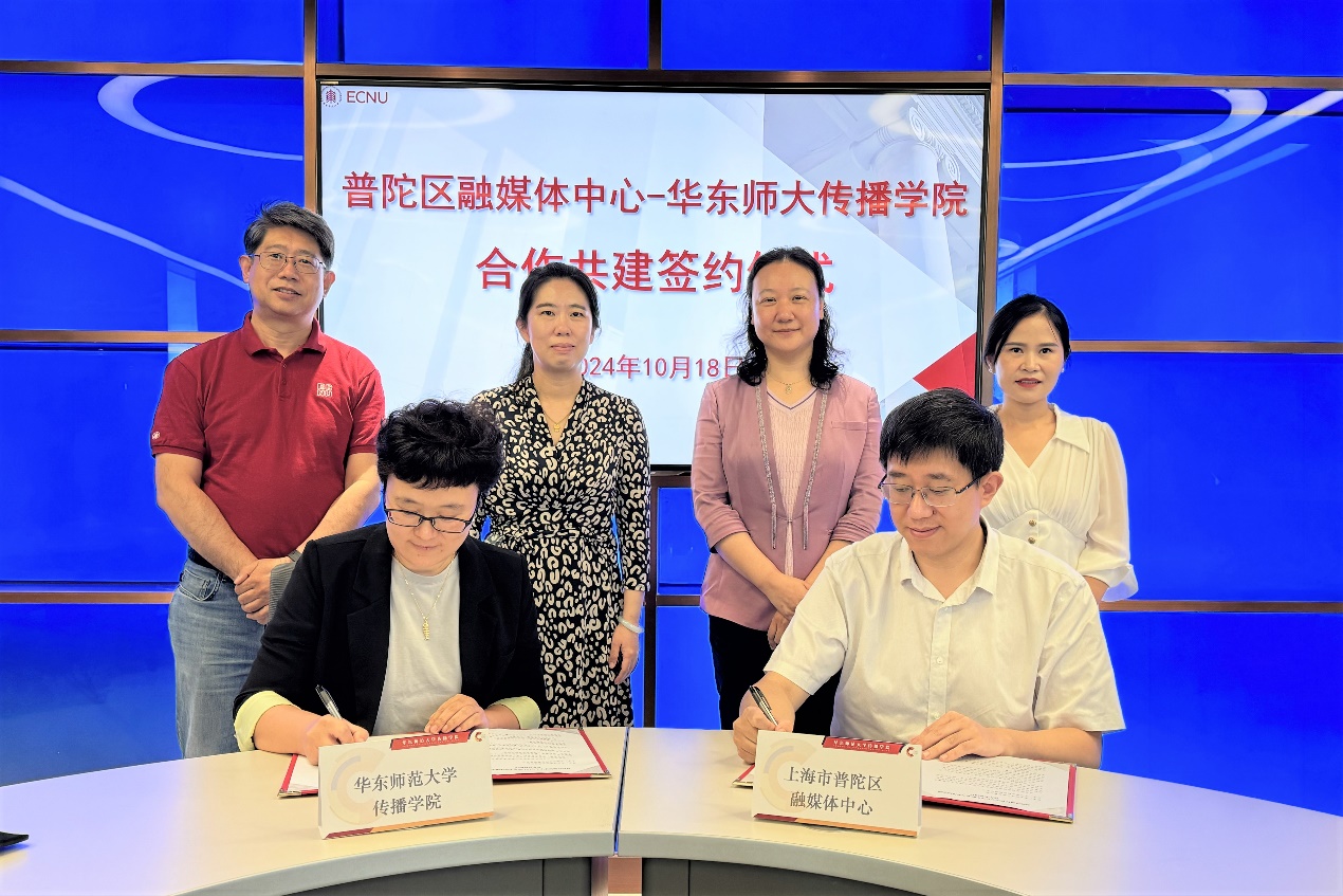 10月18日上午,ag亚游-真人ag-亚游平台 与普陀区融媒体中心合作共建协议签约仪式在ag亚游 智慧与创意融媒体教学示范中心举行。ag亚游 党委书记朱文佳,院长王峰,副院长于晶及相关辅导员;普陀区委宣传部副部长、网信办主任、区新闻办主任钱晓莉,普陀区委宣传部副部长陆红,普陀区融媒体中心副主任黄津亮及普陀区融媒体中心各部门负责人共同出席了签约仪式。签约仪式由朱文佳主持,于晶和黄津亮代表双方现场签约。