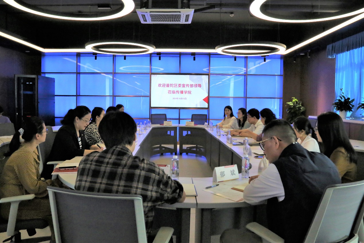 双方首先参观ag亚游 智慧与创意融媒体教学示范中心、演播大厅等实验室空间,观看普陀城区形象宣传片及普陀区融媒体中心五周年回顾片,交流智能技术推动教学科研改革与融媒体宣传工作的最新进展。