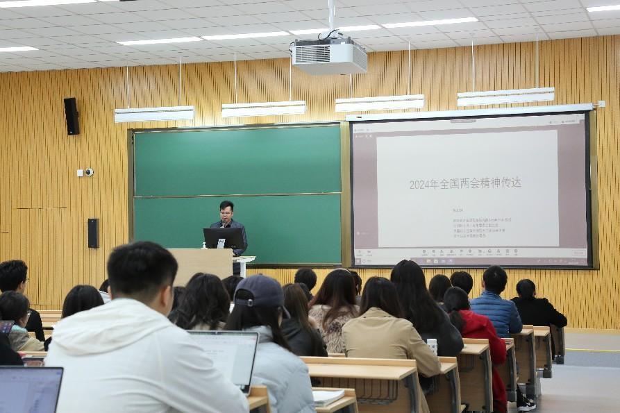 张文明教授全面介绍了2024年全国两会的基本情况,着重围绕自身研究提案分享了关于李强总理所作的政府工作报告及学习体会,同时结合两会的召开时间、2024年新变化、两会主题、核心任务、政府报告关键词等问题进行了分享。