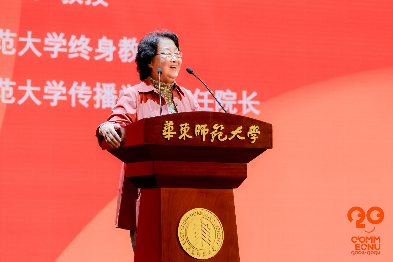 东方明珠新媒体股份有限公司副总裁、上海尚世影业有限公司执行董事、1992级影视教育专业(广播电视编导专业前身)毕业生鱼洁作为校友代表上台发言,讲述自己从丽娃河畔开启传媒职业生涯以来的拼搏历程与感悟,鼓励年轻学子刻苦勤勉、孜孜以求,担负起新时代的文化使命。
