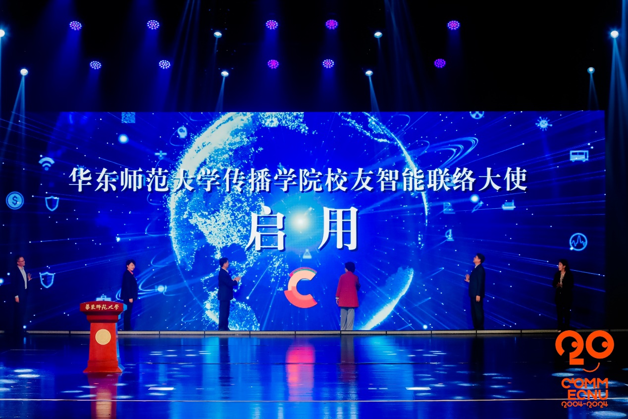 “ag亚游 校友智能联络大使”(数字人)发布仪式中,ag亚游 历任和现任院长王晓玉、严三九、吕新雨、王峰,华东师范大学校友工作办公室主任任开蕾,ag亚游 党委书记朱文佳共同启用ag亚游 校友智能联络大使——虚拟数字吉祥物“夏小传”。