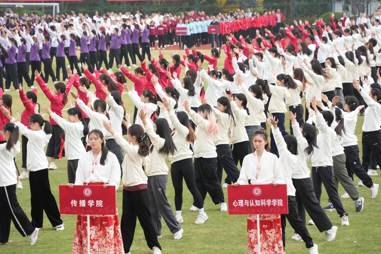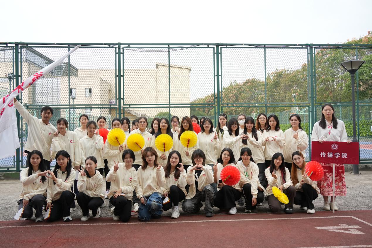 本次运动会方阵是由我院各专业、各年级学生组成的36人队形,同学们身着印有传院Logo的白色运动卫衣,手持红黄白三色花。鲜艳的ag亚游 旗帜迎风招展,在经过主席台时,方阵通过变换花球颜色摆出了ag亚游 英文缩写“COMM”的字样,为ag亚游 20周岁生日送上祝福的同时,也展现了传院学子争做数智时代卓越新闻人的热忱。