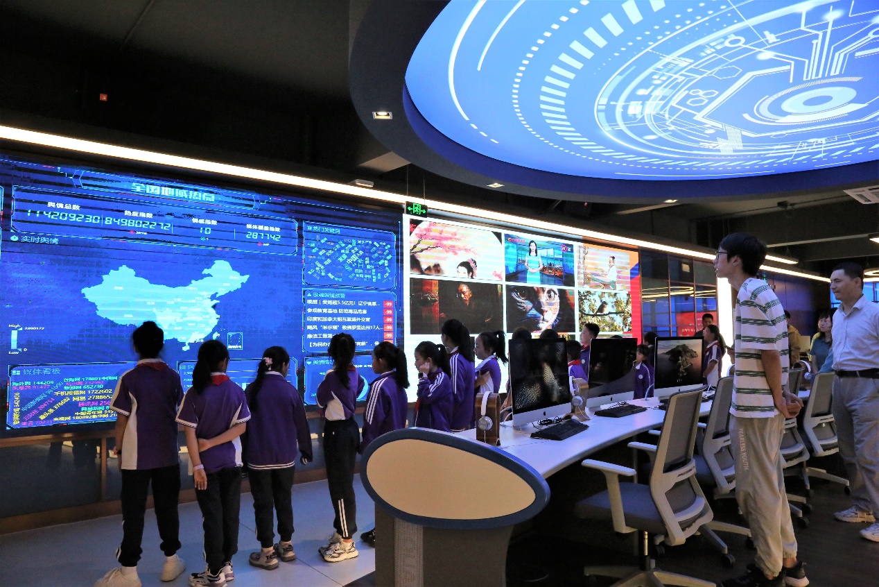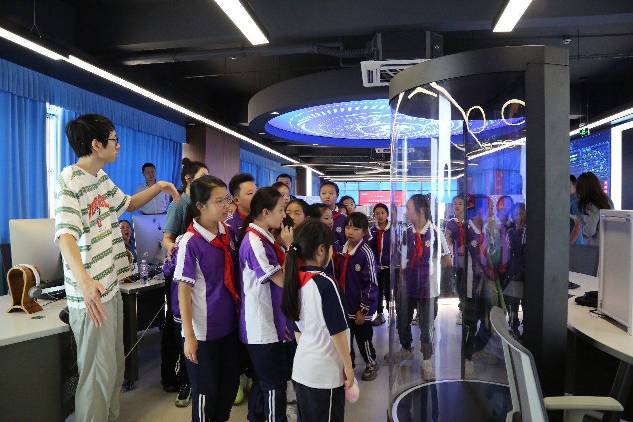 仁德一小一行首先参观了ag亚游 智慧与创意融媒体教学示范中心,观看由ag亚游 师生利用生成式人工智能技术制作的环保主题宣传片等成果,面对精彩纷呈的AI虚拟影像,小学生们表示出极大的好奇与热情,纷纷表示感受到了AIGC技术的魅力。