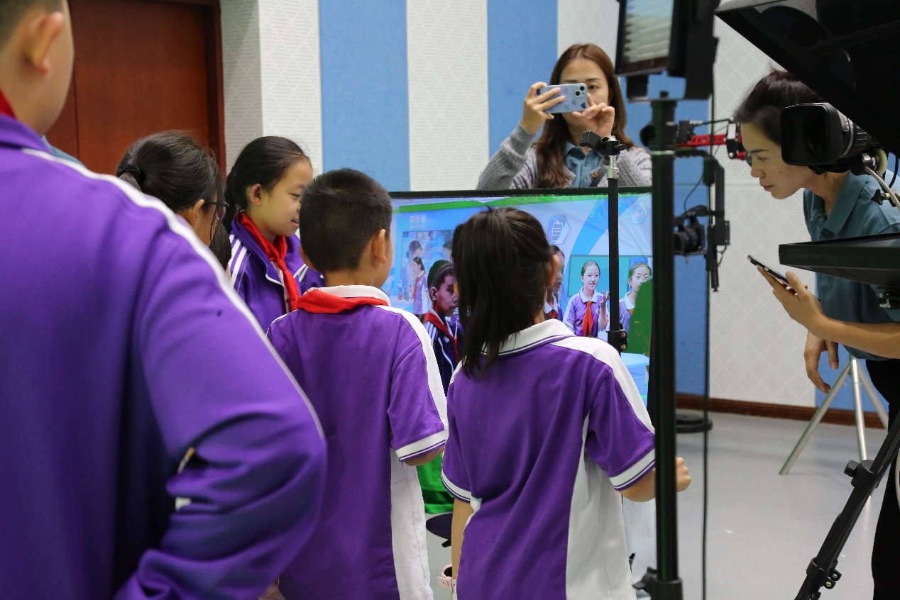 现场,杜志华老师和杜婕老师还向大家展示了绿幕录制的工作流程,并邀请同学们现场体验。仁德一小学生面对镜头朗诵诗词《示儿》,体验了一名“小主播“的出镜日常。此次交流活动向仁德一小同学们展示了ag亚游