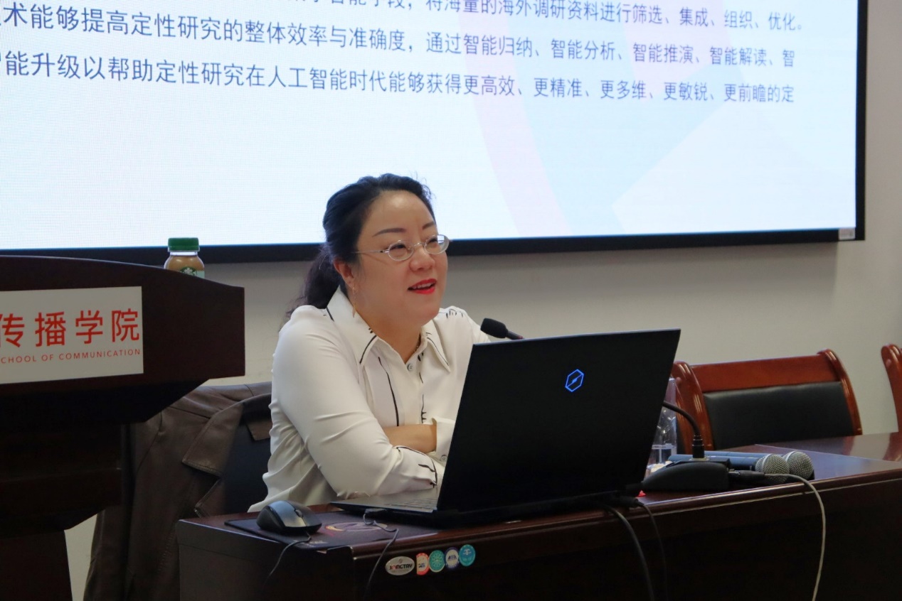 钱春莲老师从过去继而谈到当下,进入智能传播时代,中国电影跨文化传播定量研究能够借用数字智能手段,将海量的海外调研资料进行筛选、集成、组织、优化。人工智能技术也能够提高定性研究的整体效率与准确度,通过智能归纳、智能分析、智能推演、智能解读、智能评估等方法上的智能升级以帮助定性研究在人工智能时代能够获得更高效、更精准、更多维、更敏锐、更前瞻的定性升级。