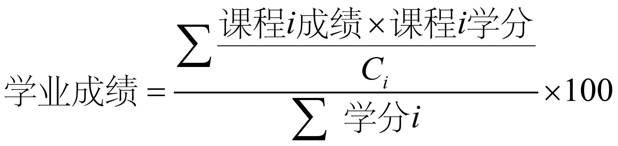 为同专业候选人同一课程i的成绩最高分,课程i学分为研究生培养计划规定的课程i的学分数。