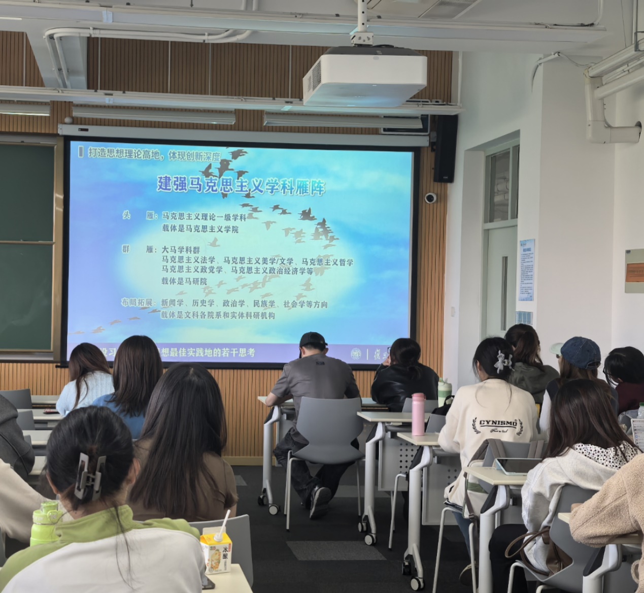 2023年10月,全国宣传思想文化工作会议首次提出并阐释了习近平文化思想,标志着我们党对中国特色社会主义文化建设规律的认识达到了新高度。习近平总书记强调,文化建设要坚定文化自信,秉持开放包容,坚持守正创新,对宣传思想文化工作提出“七个着力”重大要求。 “我体会,‘七个着力’是党中央结合当前和未来宣传思想文化工作的重点、难点与热点作出的科学部署,是习近平文化思想最新成果的核心体现。”裘新带领现场师生一起温习习近平文化思想,并谈了自己的学习体会。
