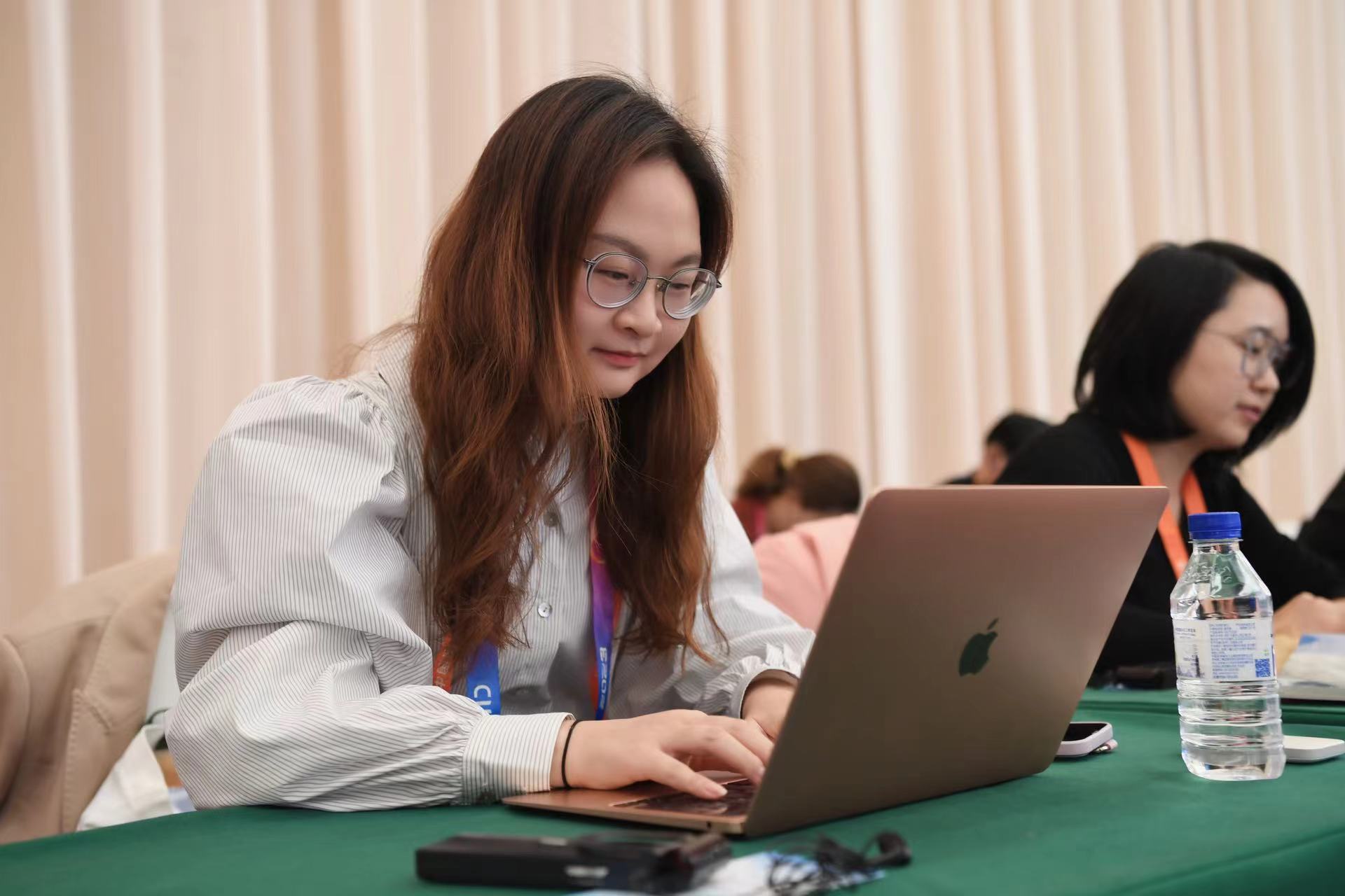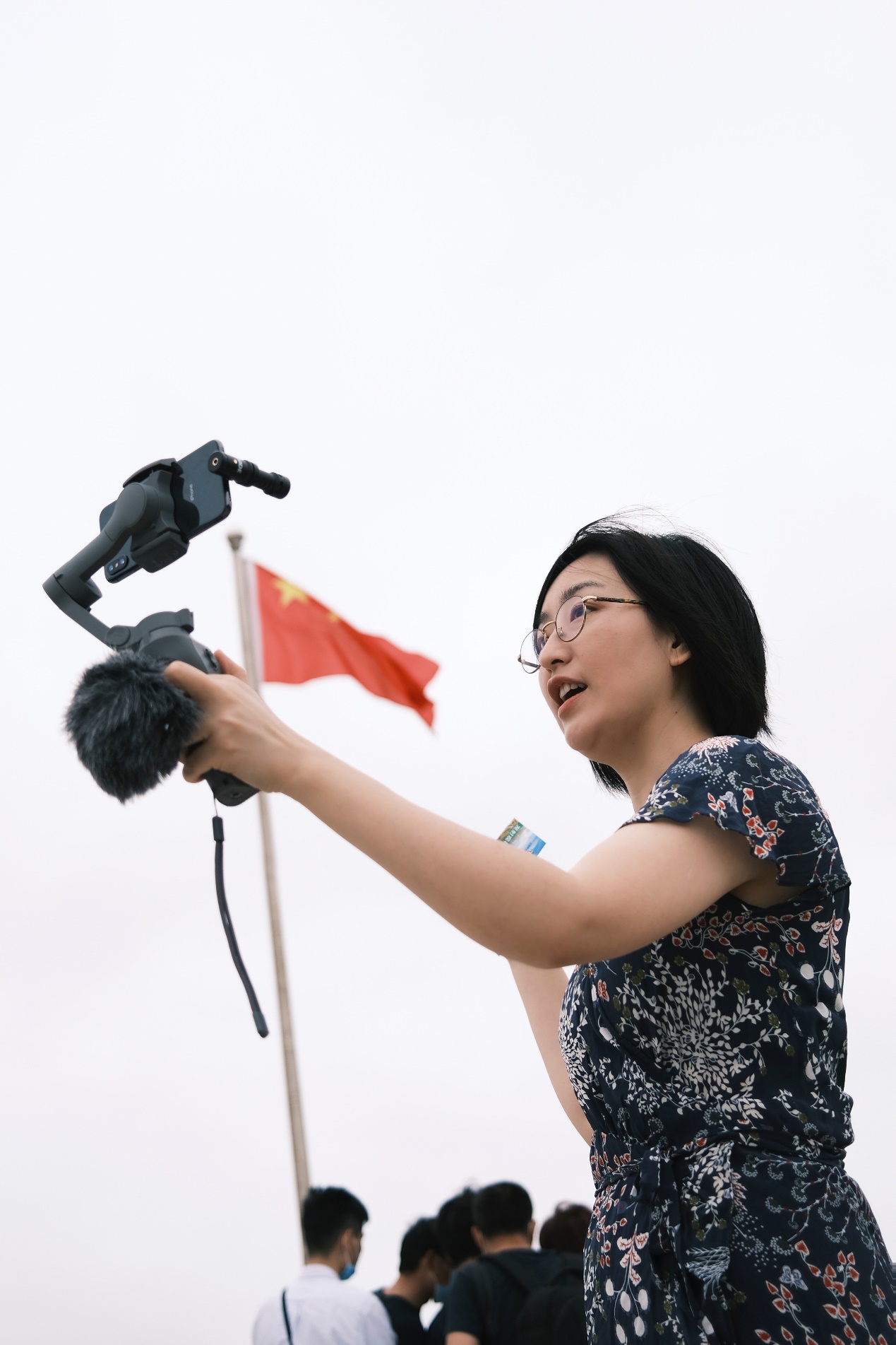 2012级校友、人民日报新媒体中心编辑、记者王嵘在报道现场