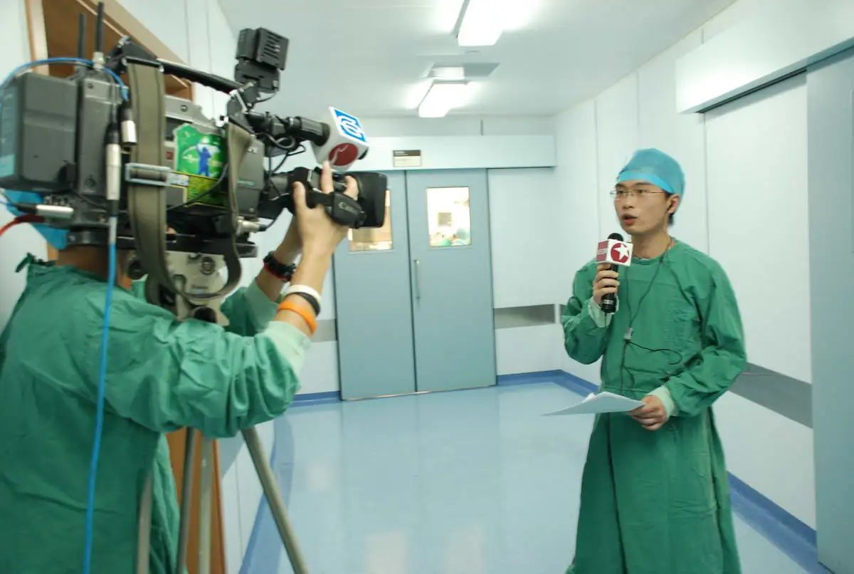 2007年1月,ag亚游 2001级校友、SMG融媒体中心新闻采访部副主任李吟涛在连体婴儿分离手术的直播报道现场
