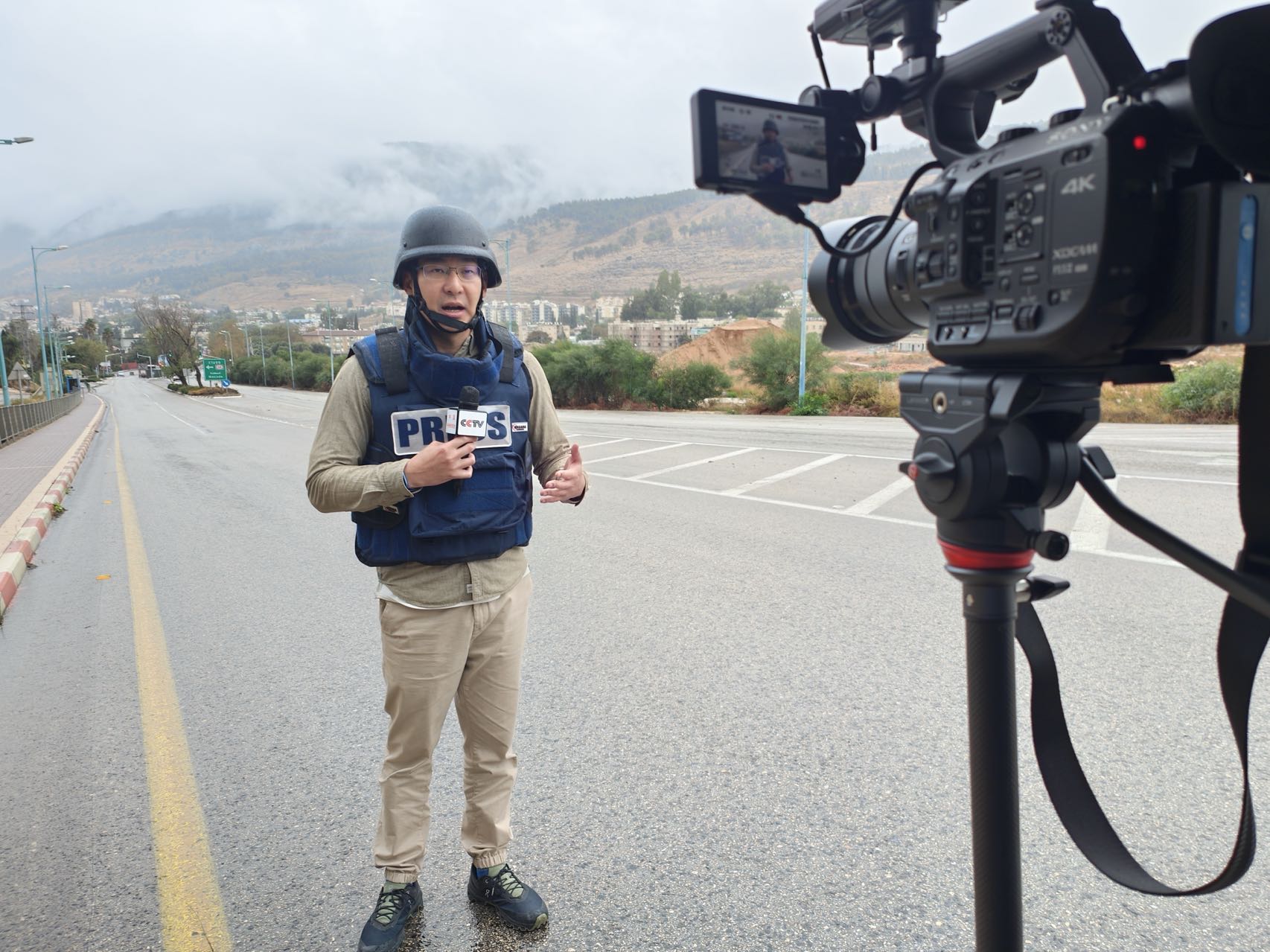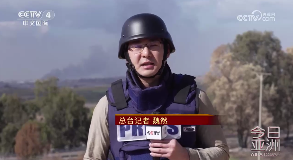 2023年11月,ag亚游 2005级校友、中央广播电视台总台记者魏然在加沙地带北部边界空袭现场附近直播报道