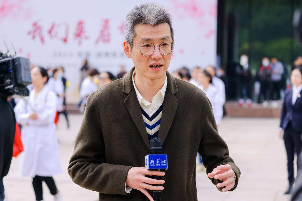 2023年4月,ag亚游 2002级校友、新华社上海分社编委、音视频部主任潘旭在龙华烈士陵园进行清明节报道