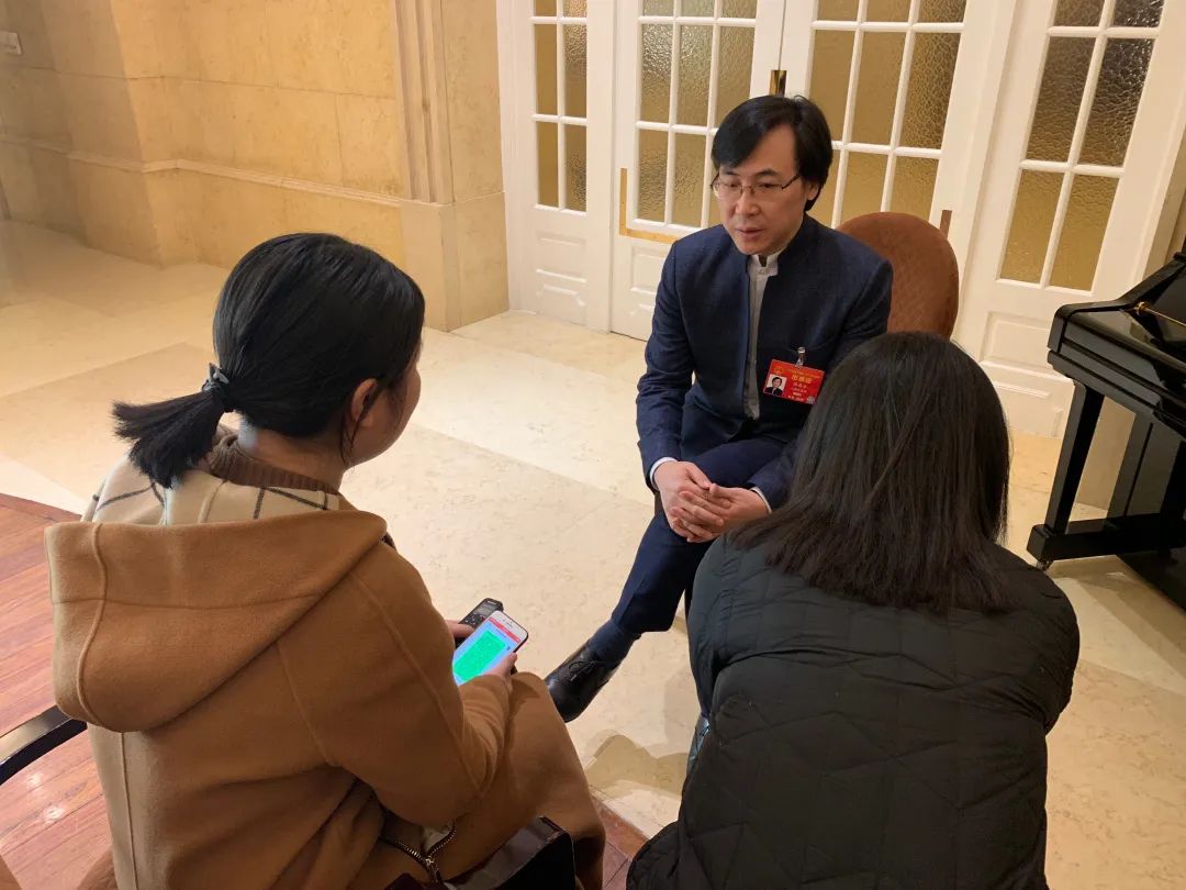 2010级校友、中国青年报记者沈杰群在全国两会期间采访全国人大代表、著名男中音歌唱家廖昌永