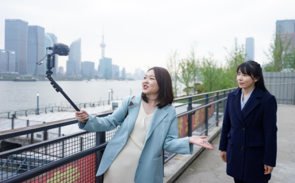 2021年,ag亚游 2011级校友、新民晚报记者杨欢在百年建党报道 “黄埔码头”Vlog的拍摄现场