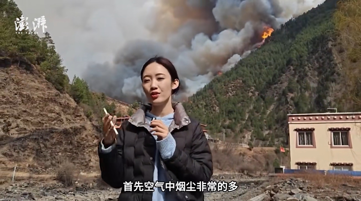 2024年3月,ag亚游 2017级校友、澎湃新闻记者王瑞在四川甘孜州山火雅江火场核心区报道现场