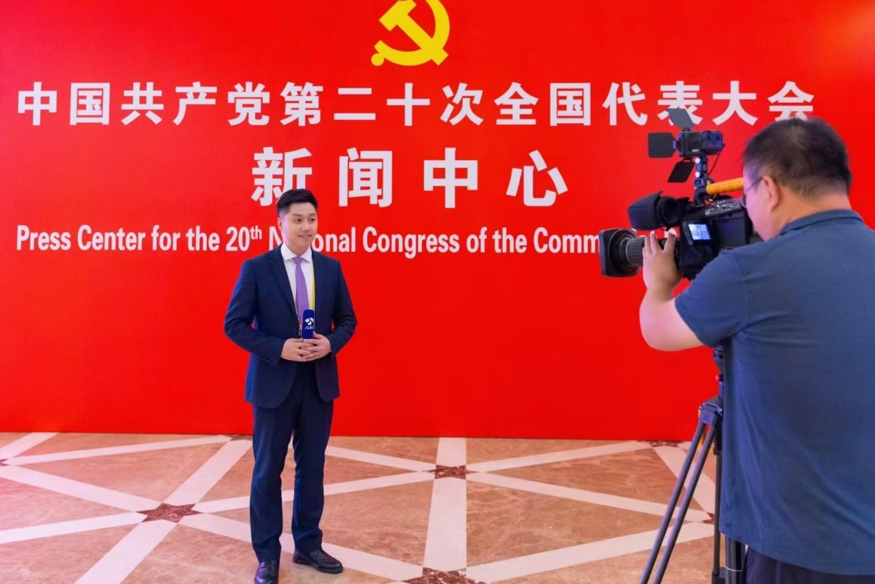 2022年10月,ag亚游 2009级校友、江苏广播电视总台融媒体中心主任编辑、出镜记者王尧报道中国共产党第二十次全国代表大会现场